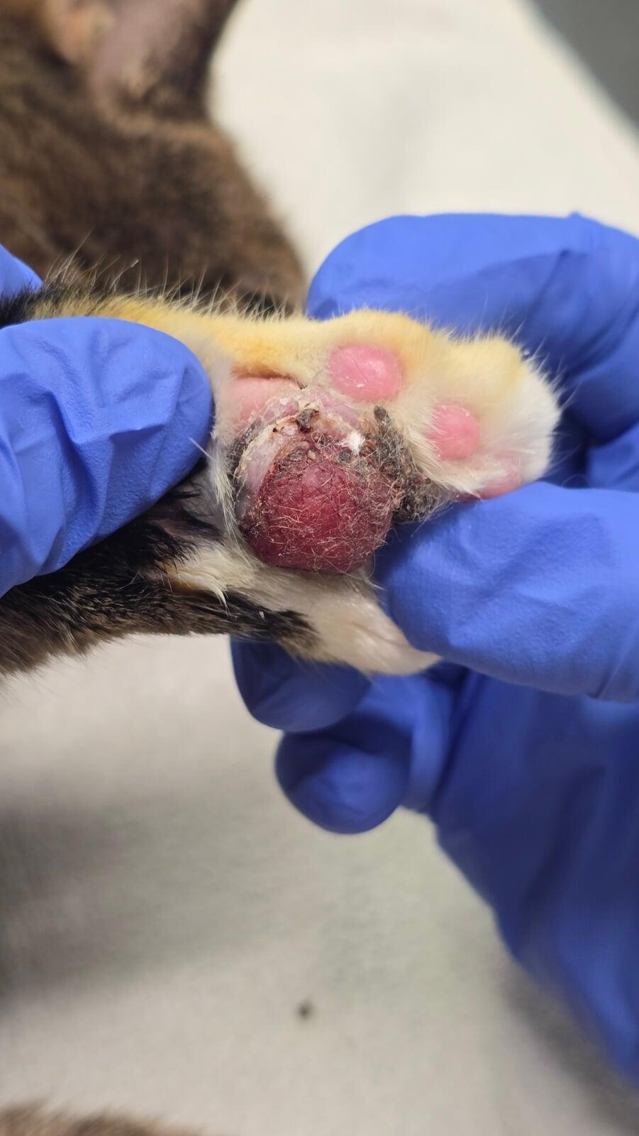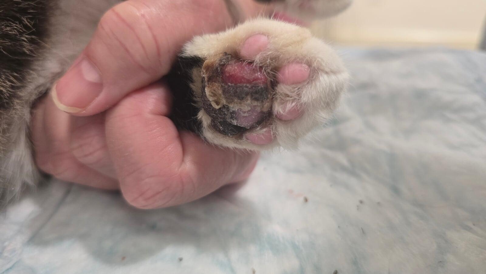 (Left image: Paw prior to treatment. 12/05/2025 )